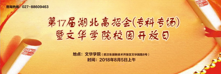 作为2018年第17届湖北高招会的最后一次压轴活动,活动期间,东道主文华学院将与主办方为全省的考生免费提供五大服务: